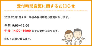 営業時間 /午前 / 9:00 ~ 12:00午後 / 14:30 ~ 19:30(予約優先制)